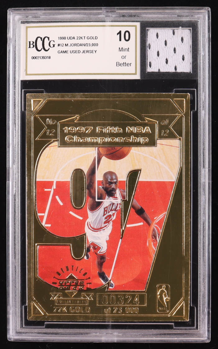 Michael Jordan 1998 Upper Deck 22KT Gold #12 with Game-Used Jersey Piece (BCCG 10)
