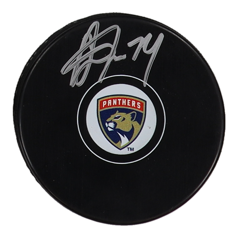 Owen Tippett Signed Panthers Logo Hockey Puck (Beckett)