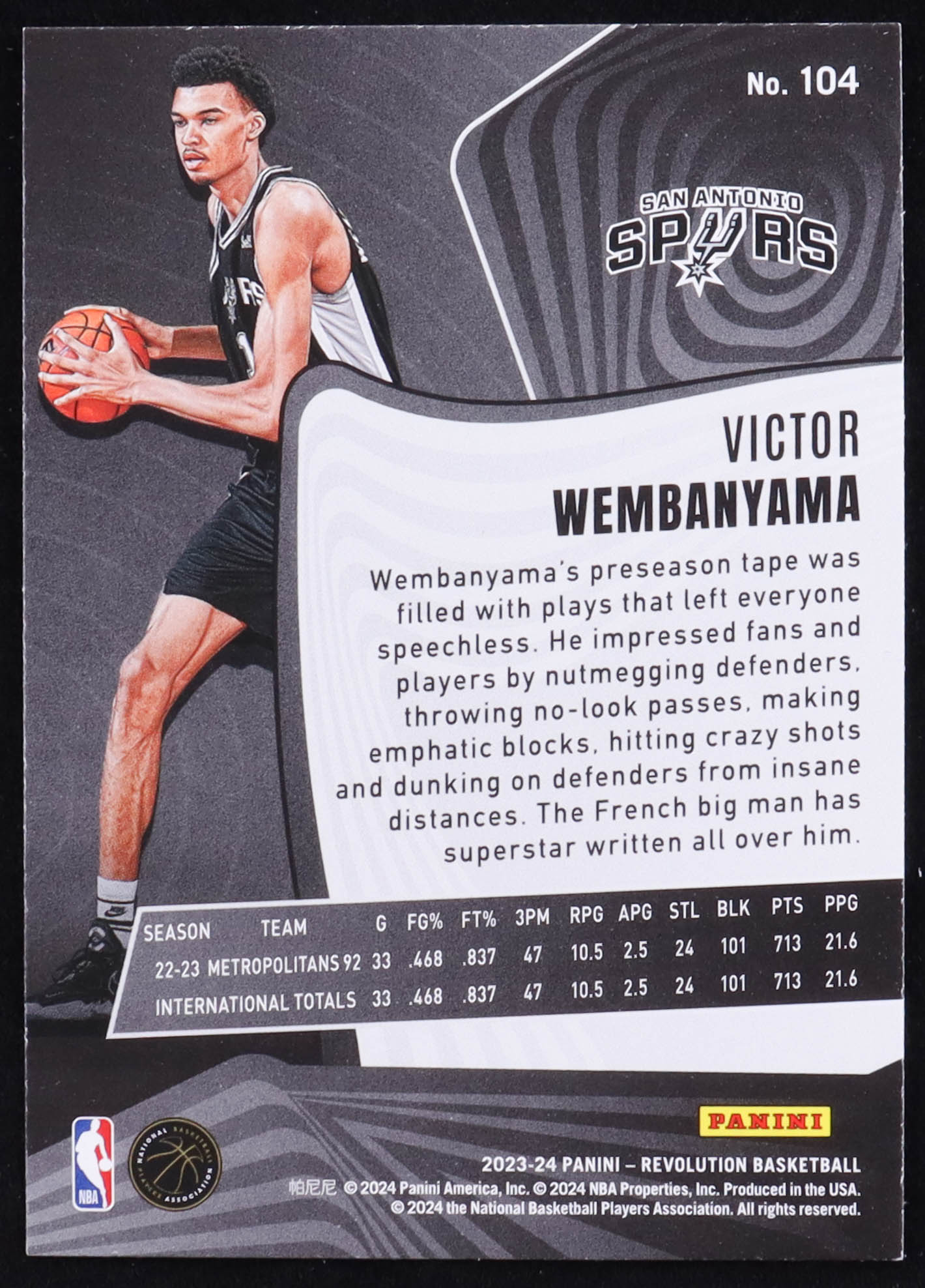 Victor Wembanyama 2023-24 Panini Revolution #104 RC
