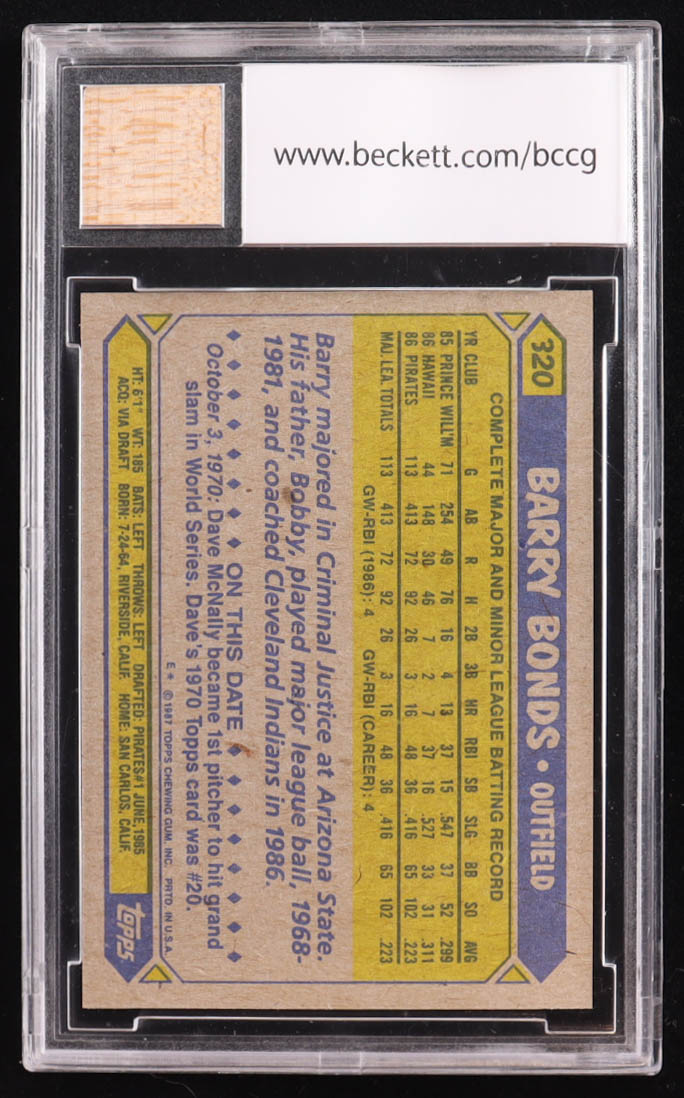 Barry Bonds 1987 Topps #320 RC with Game-Used Bat Piece (BCCG 10)