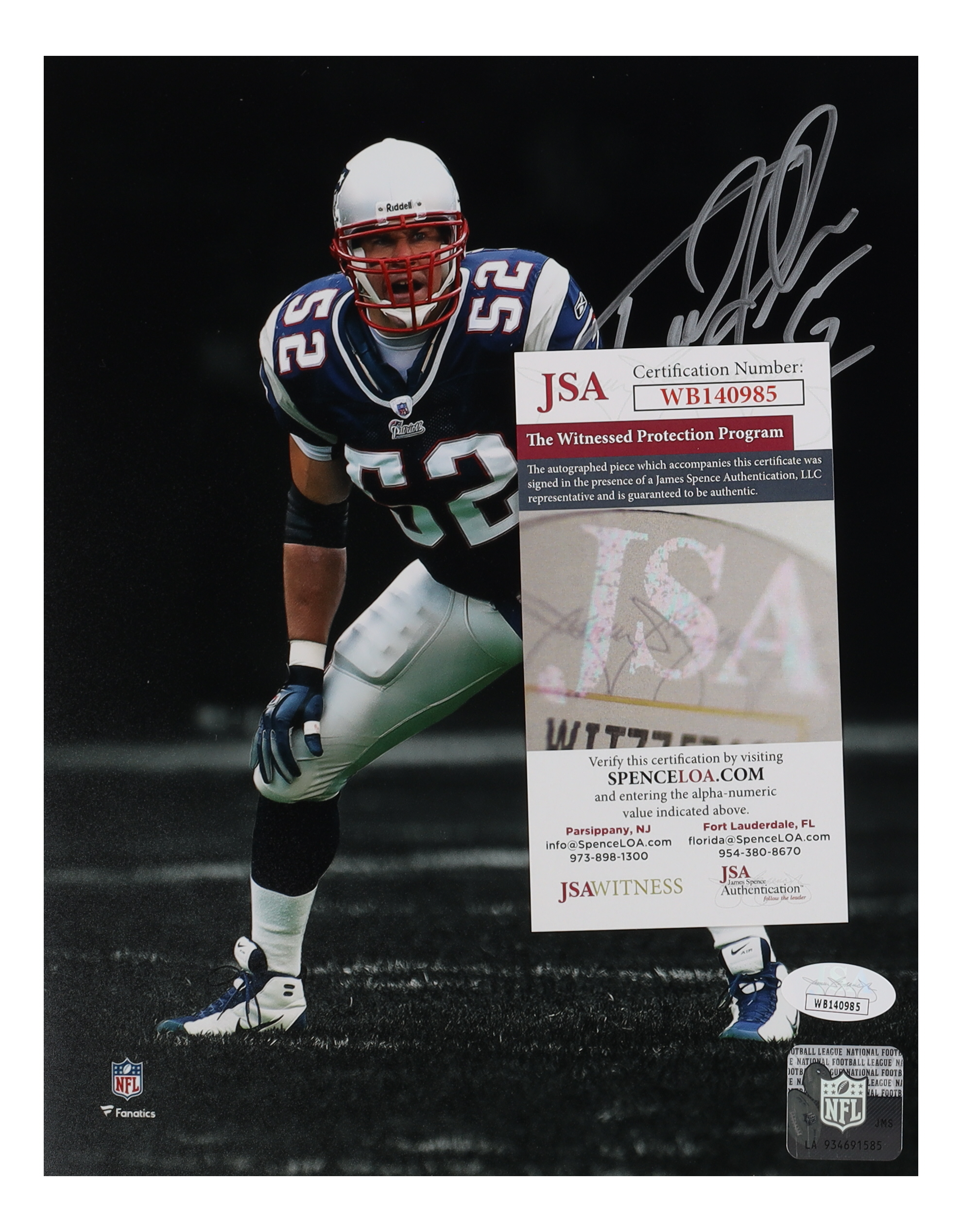 Photo measures 8" x 10" in size. Hand-signed by Ted Johnson (New England Patriots).