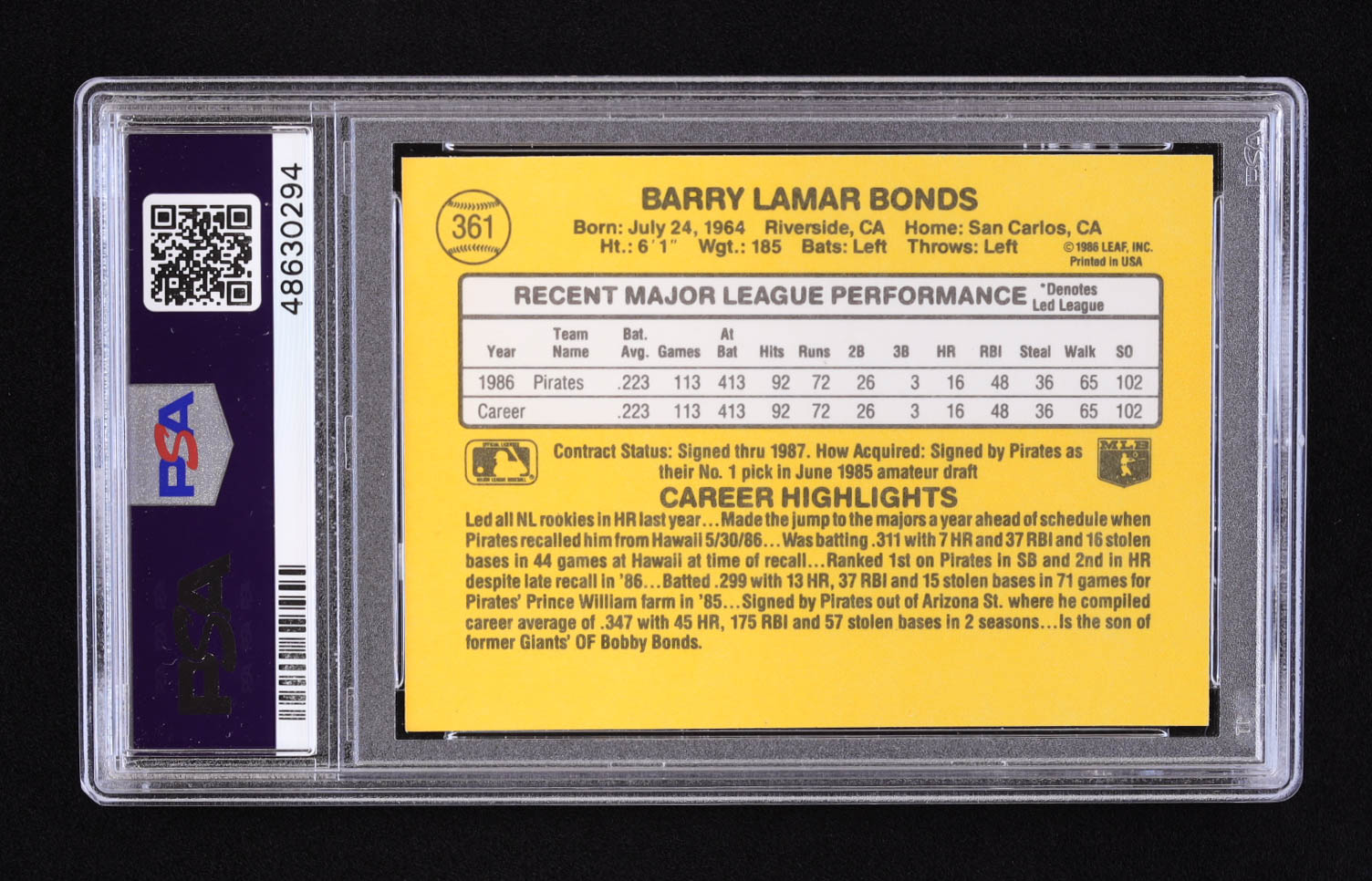 Barry Bonds 1987 Donruss #361 RC (PSA 8)