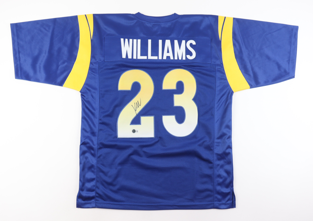 Custom jersey with everything sewn on, size L. Hand-signed by Kyren Williams.