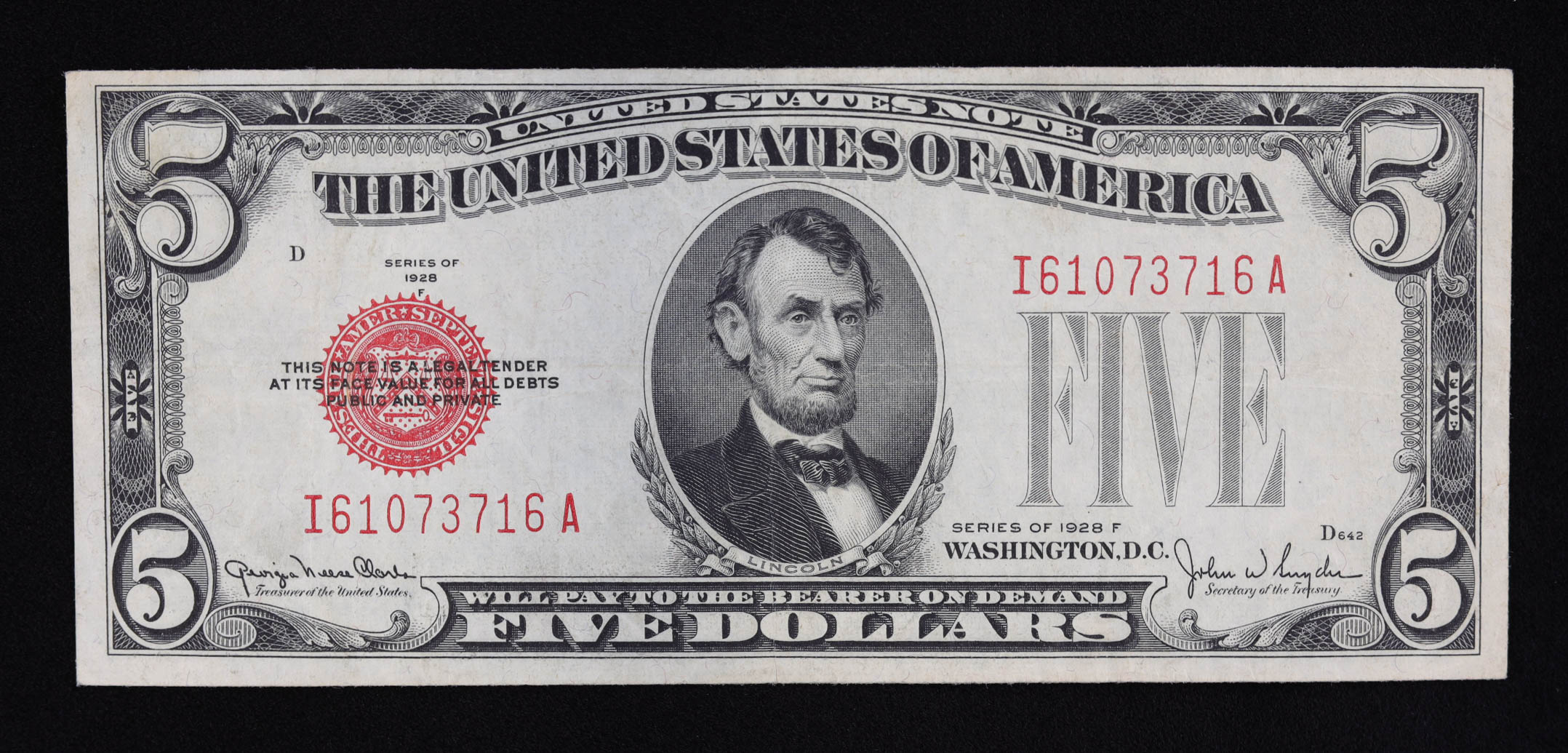 1928-F United States Red Seal $5 Five Dollar Bank Note