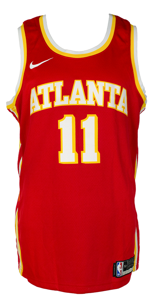 Nike jersey. Everything is printed on, size 52. Hand-signed by Trae Young (Atlanta Hawks).