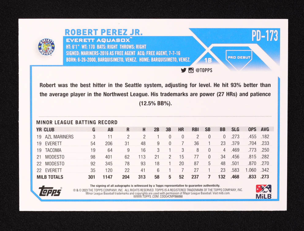 Robert Perez Jr. 2023 Topps Pro Debut Autographs #PD173 RC