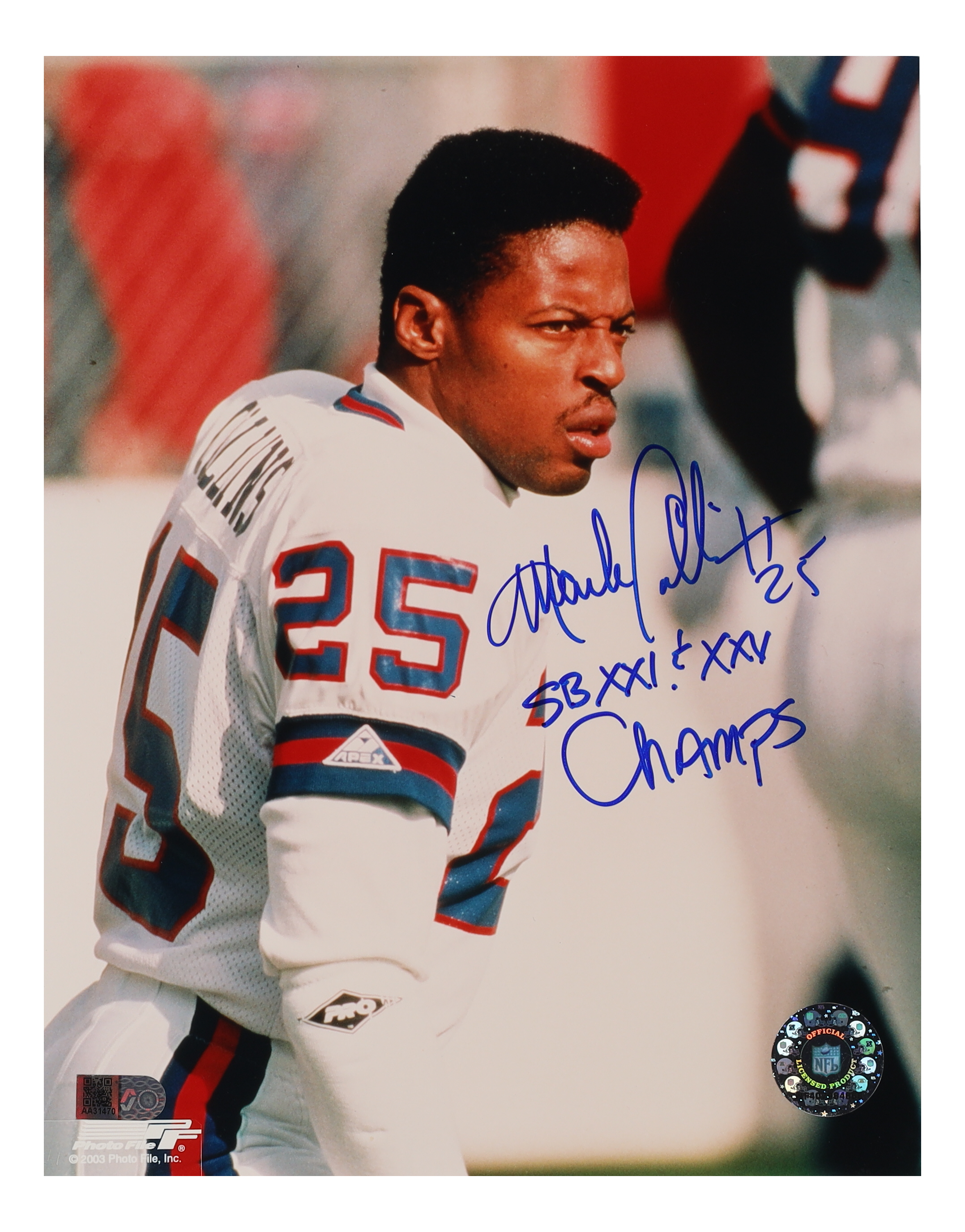 Mark Collins Signed Dolphins 8x10 Photo Inscribed "SB XXI & XXV Champs" (AIV)