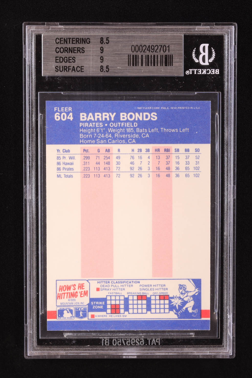Barry Bonds 1987 Fleer #604 RC (BGS 8.5)