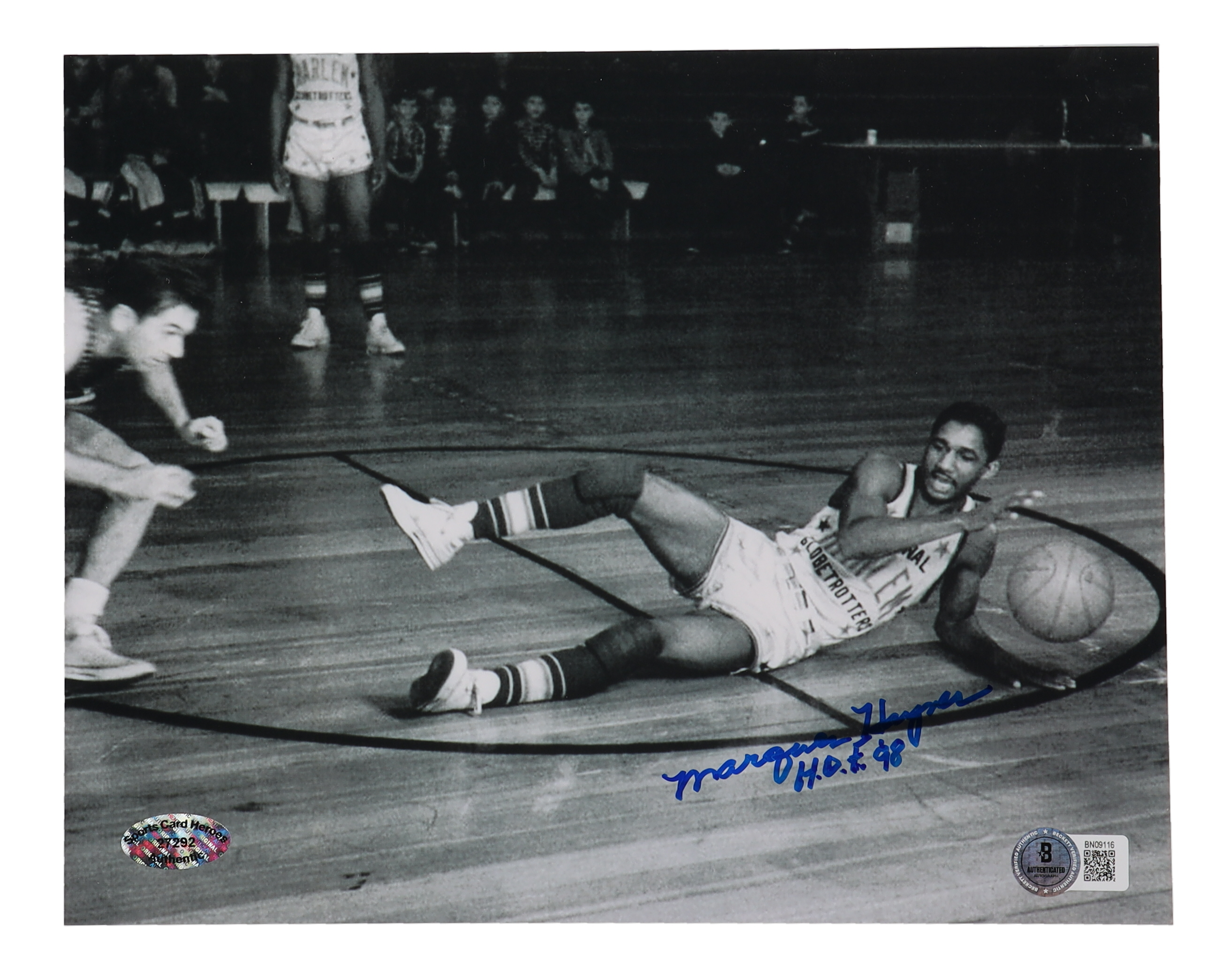 Photo measures 11" x 14" in size. Hand-signed by Marques Haynes (D. 2015).
