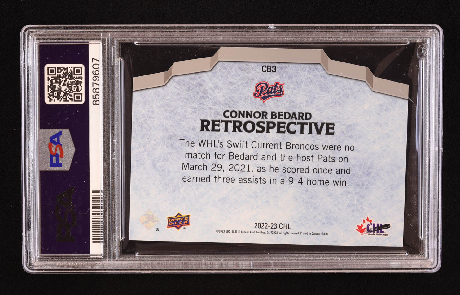 Connor Bedard 2022-23 Upper Deck CHL Connor Bedard Retrospective #CB3 RC (PSA 9)