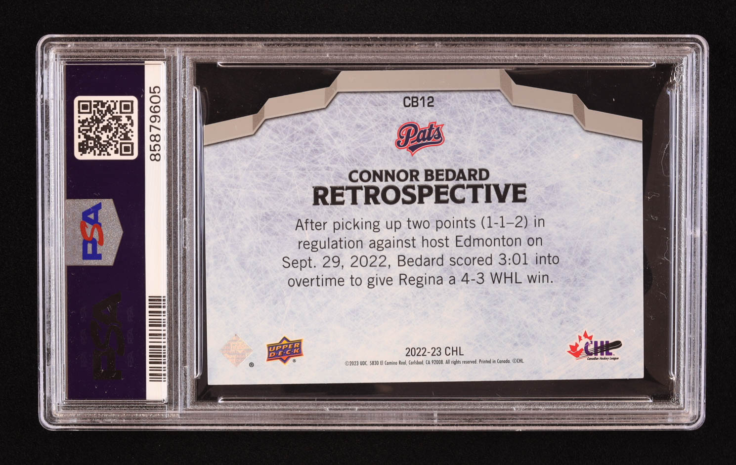 Connor Bedard 2022-23 Upper Deck CHL Connor Bedard Retrospective #CB12 RC (PSA 9)