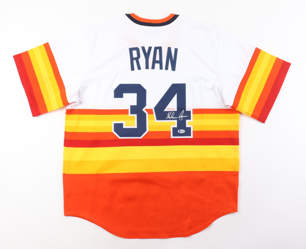 Nike jersey. Everything is pressed on, size XL. Hand-signed by Nolan Ryan (Houston Astros, HOF).