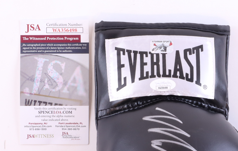 The autograph(s) includes an official James Spence Authentication (JSA) hologram and matching COA as well as a Mike Tyson fighter hologram from Fiterman Sports Group for authenticity purposes. The signing of this item was witnessed by JSA.