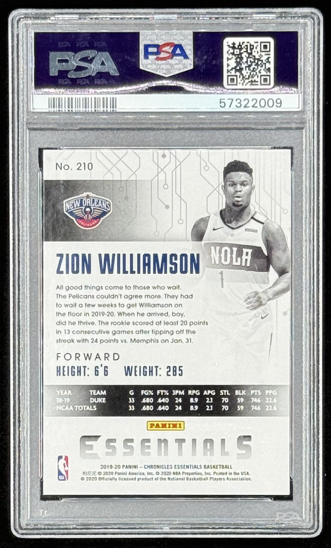 Zion Williamson 2019-20 Panini Chronicles #210 Essentials RC (PSA 10)