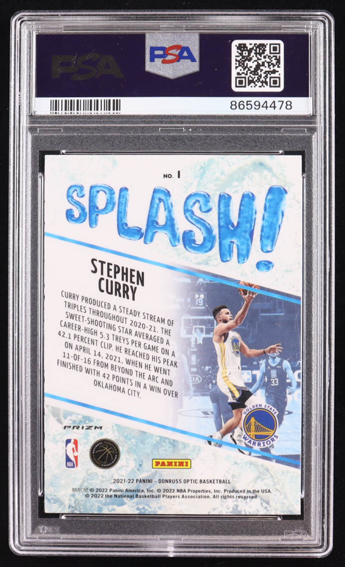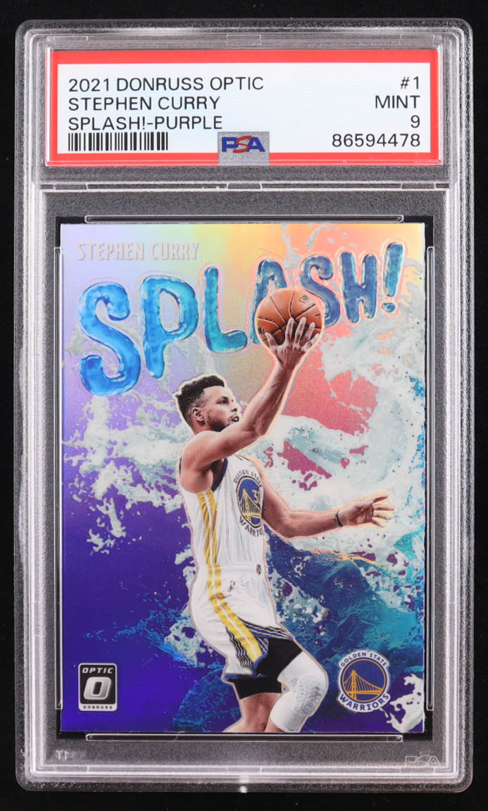 Stephen Curry 2021-22 Donruss Optic Splash! Purple #1 (PSA 9)