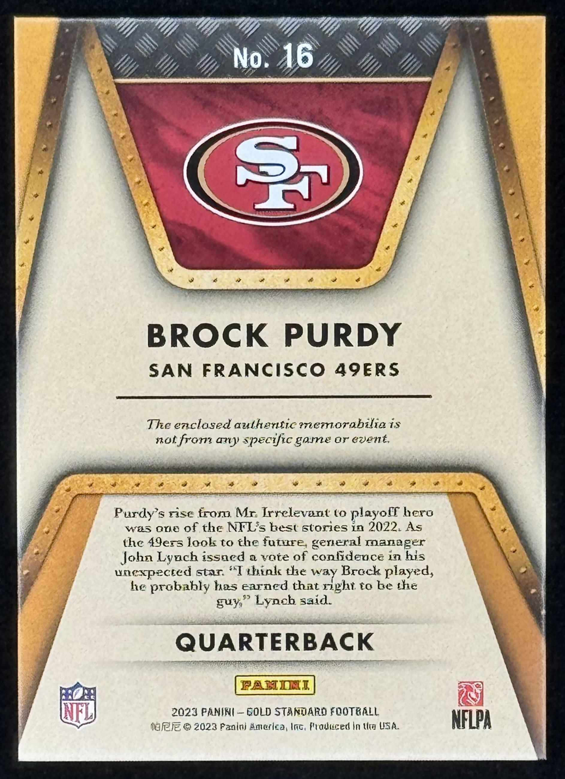 Brock Purdy 2023 Panini Gold Standard Gold Mine Materials #16 #243/299