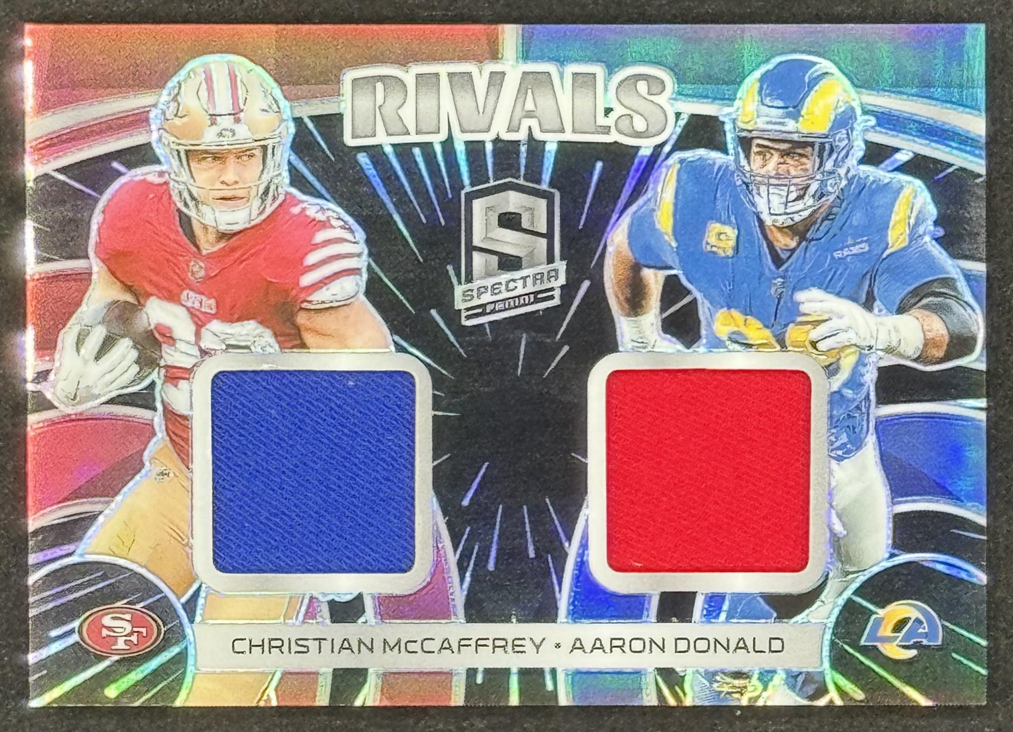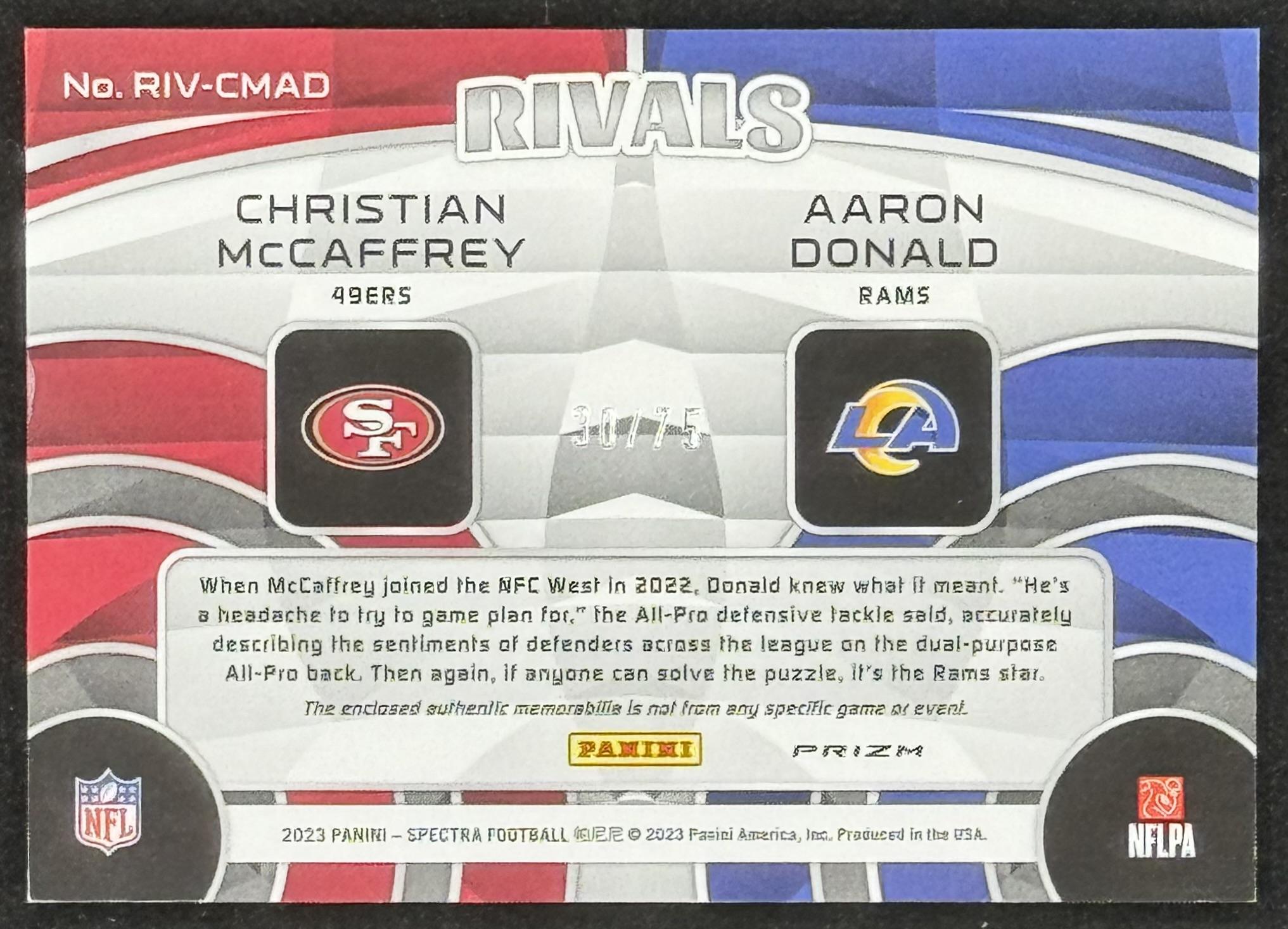 Christian McCaffrey / Aaron Donald 2023 Panini Spectra Rivals Materials Hyper #8 #30/75