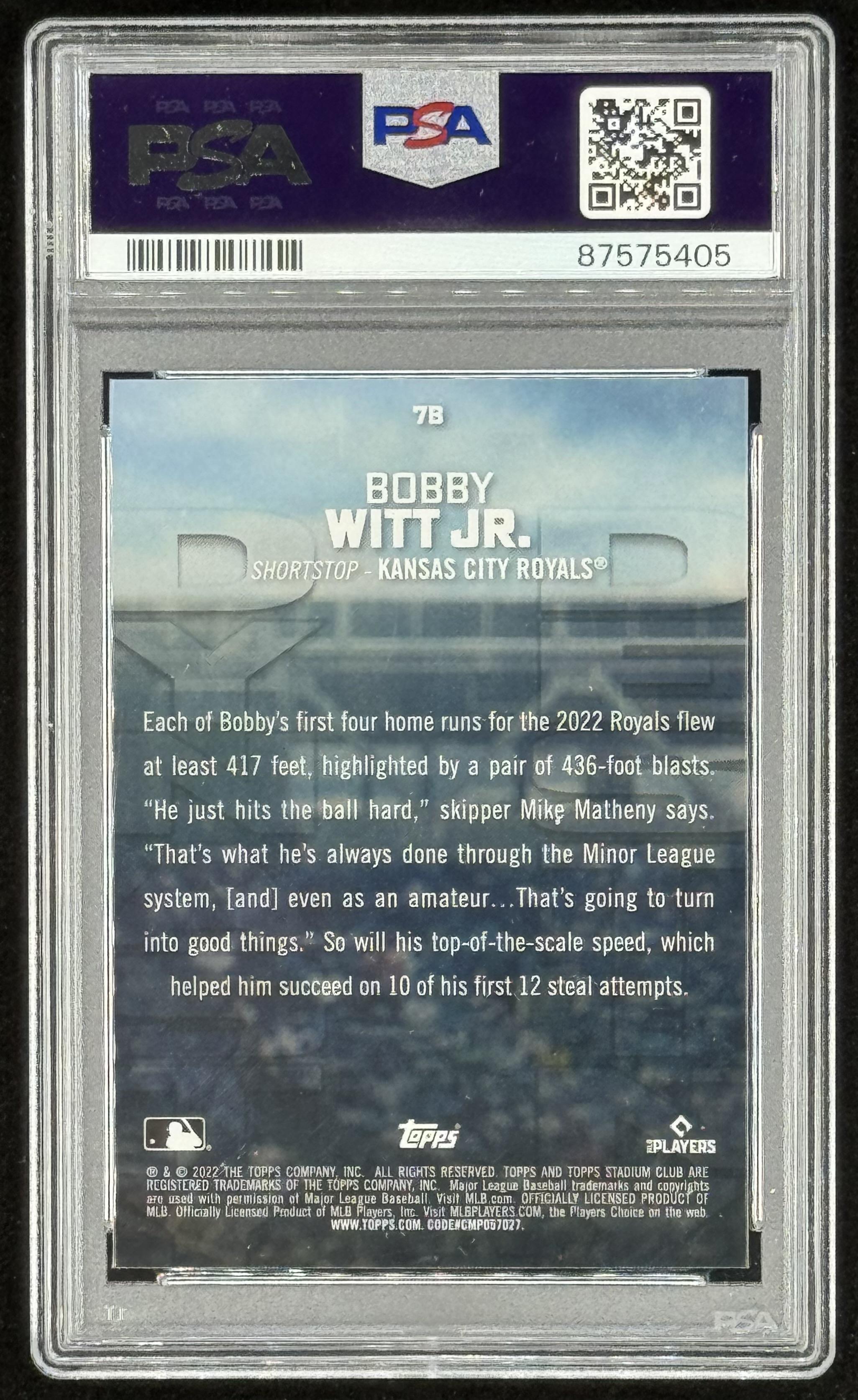 Bobby Witt Jr. 2022 Stadium Club Chrome Dynasty and Destiny #7B RC (PSA 10)