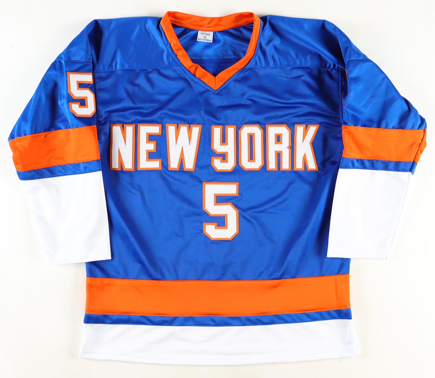 Custom jersey. Everything is sewn on, size XL. Hand-signed and inscribed by Denis Potvin (HOF).