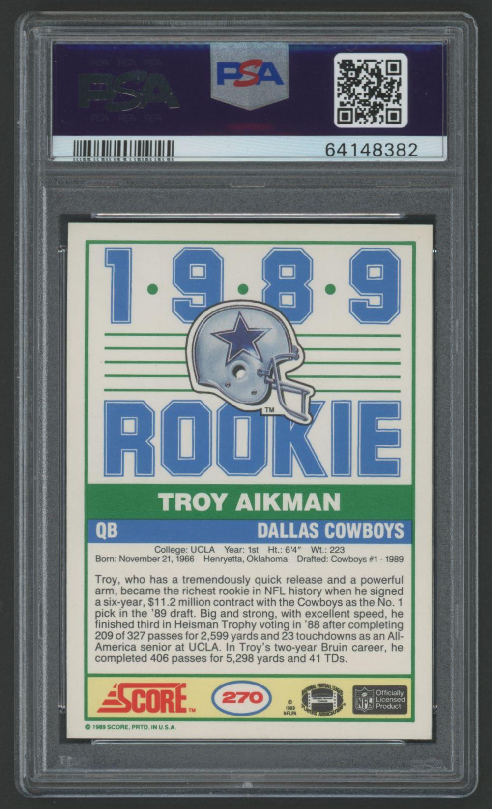 Troy Aikman 1989 Score #270 RC (PSA 9)