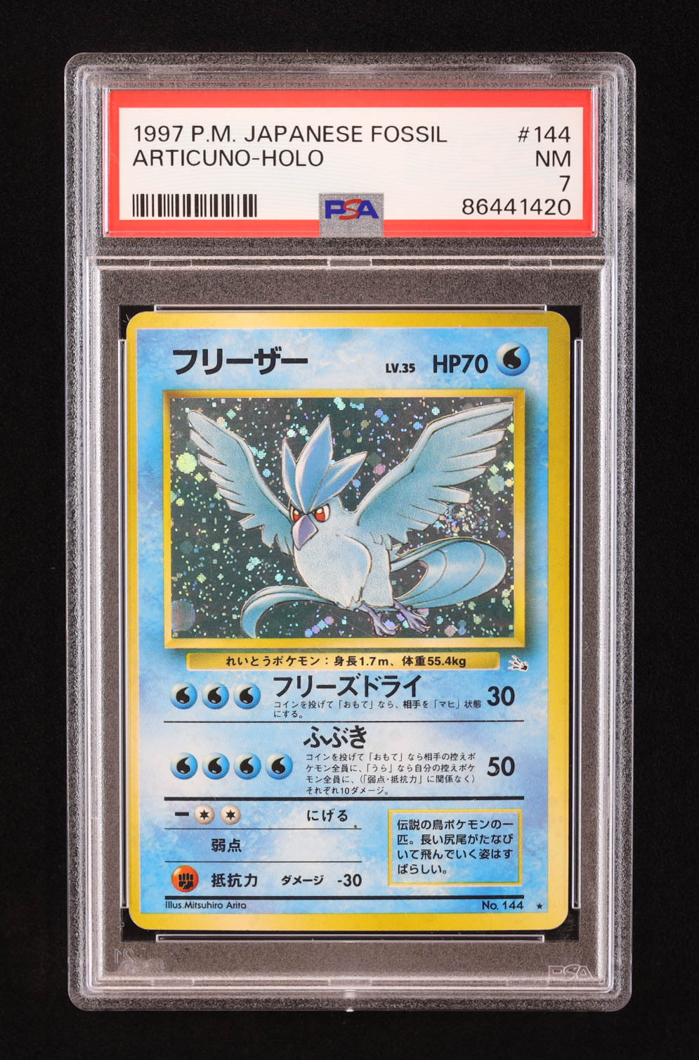 Articuno 1997 Pokemon Mystery of the Fossils Japanese #144 Holo (PSA 7)