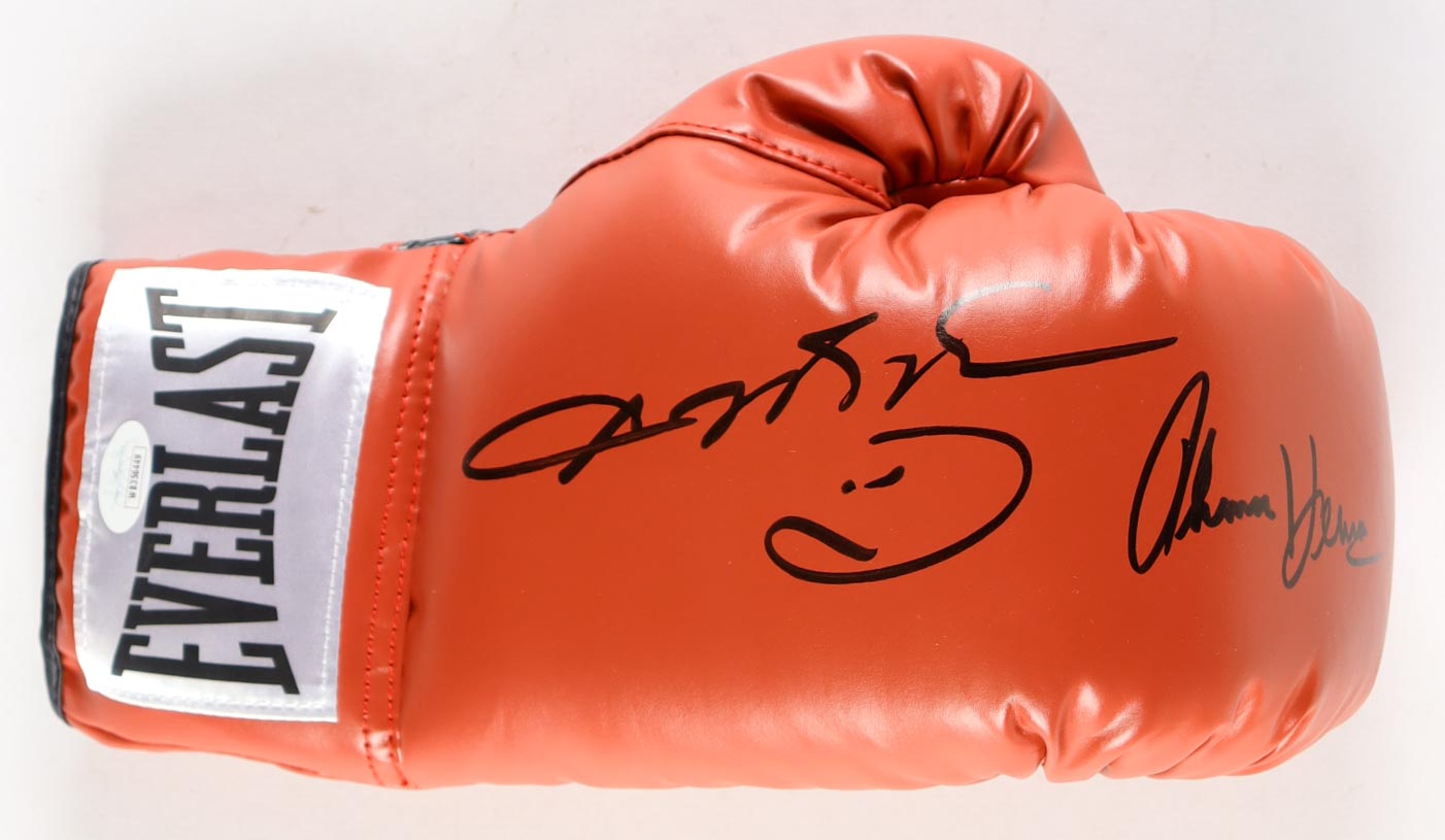 Everlast right boxing glove. Hand-signed by Sugar Ray Leonard (HOF) and Thomas Hearns (HOF).