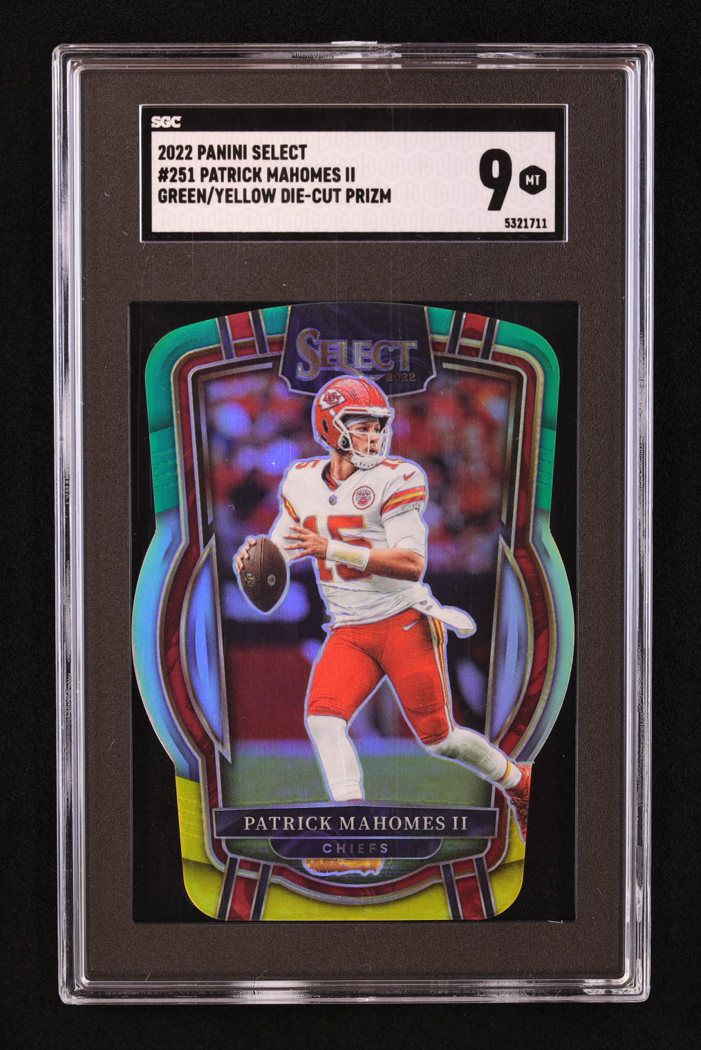 Patrick Mahomes II 2022 Select Prizm Green and Yellow Die Cut #251 (SGC 9)