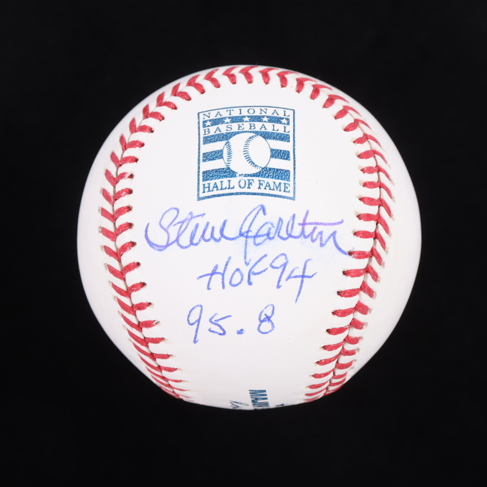 Steve Carlton Signed OML Hall Of Fame Logo Baseball Inscribed "HOF 94" & "95.8" (Beckett)