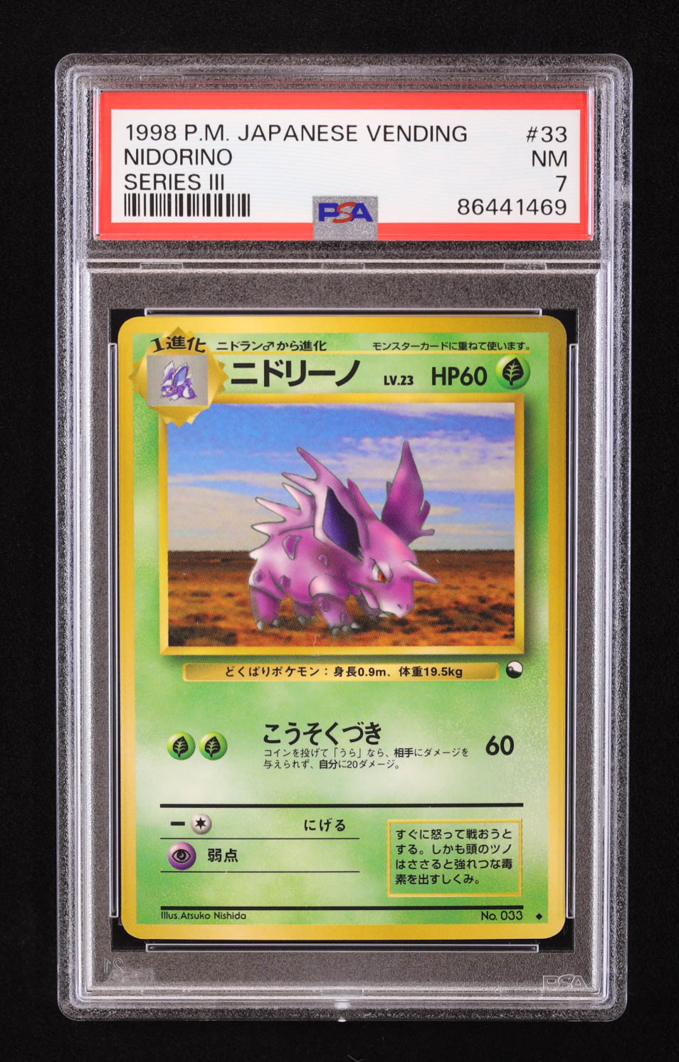 Nidorino 1998 Pokemon Vending Series 3 (Green) Japanese #33 (PSA 7)