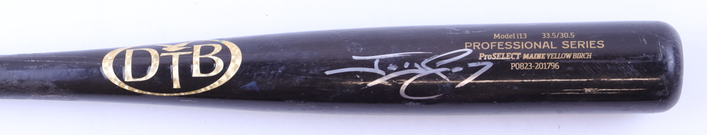 DTB Model i13 Professional Series baseball bat. Hand-signed by Jonny Gomes (Tampa Bay Rays). The bat has been game-used by an unknown player and shows associated scuffing and cracks.