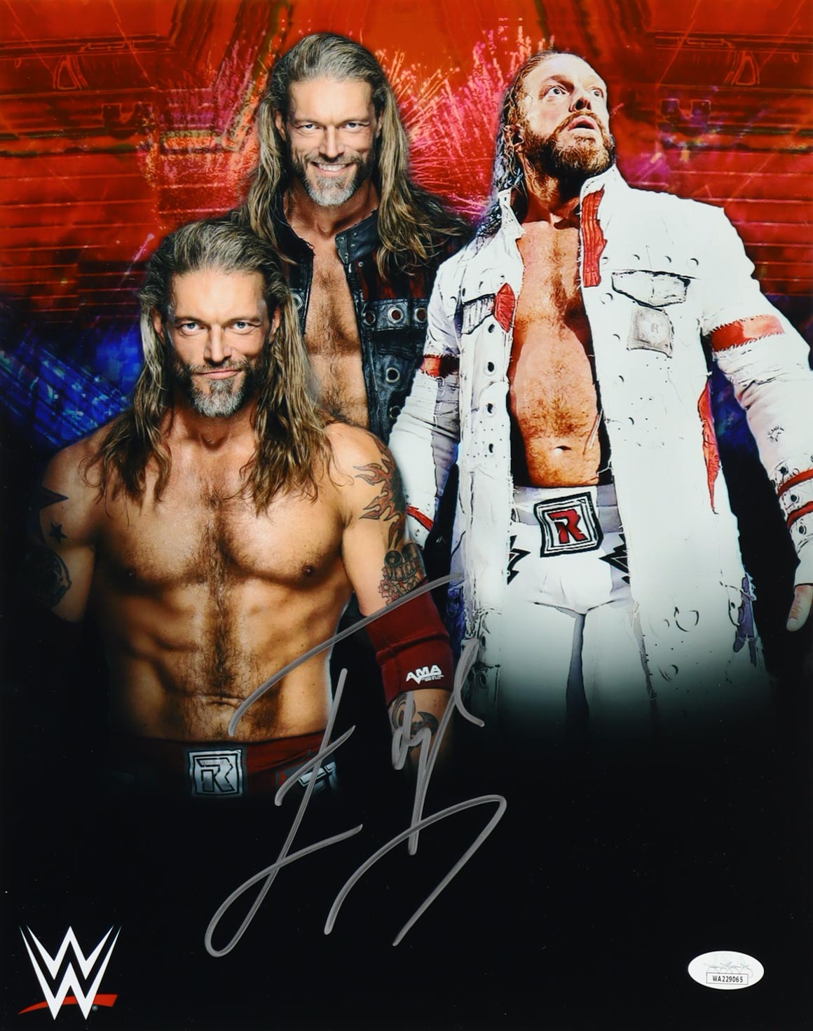 Photo measures 11" x 14" in size and has been hand-signed by Edge (Adam Copeland, HOF).