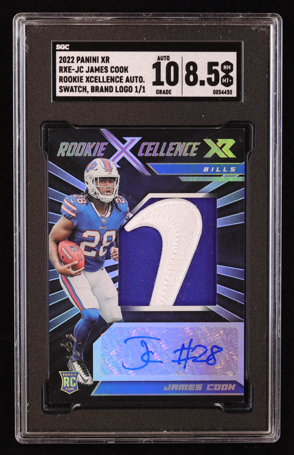 James Cook 2022 Panini XR Rookie Xcellence Autograph Swatches Brand Logo #15 #1/1 RC (SGC 8.5 | Auto 10)