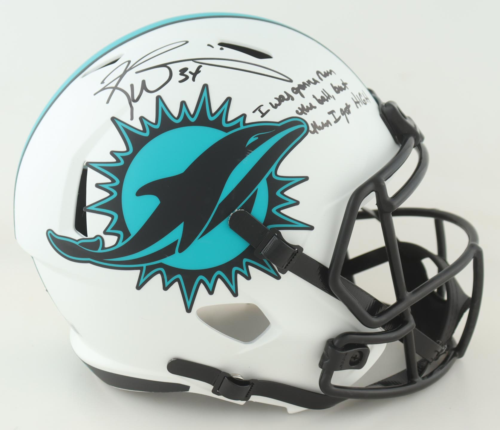 Riddell Miami Dolphins full-size replica Lunar Eclipse Alternate speed helmet. Hand-signed and inscribed by Ricky Williams.