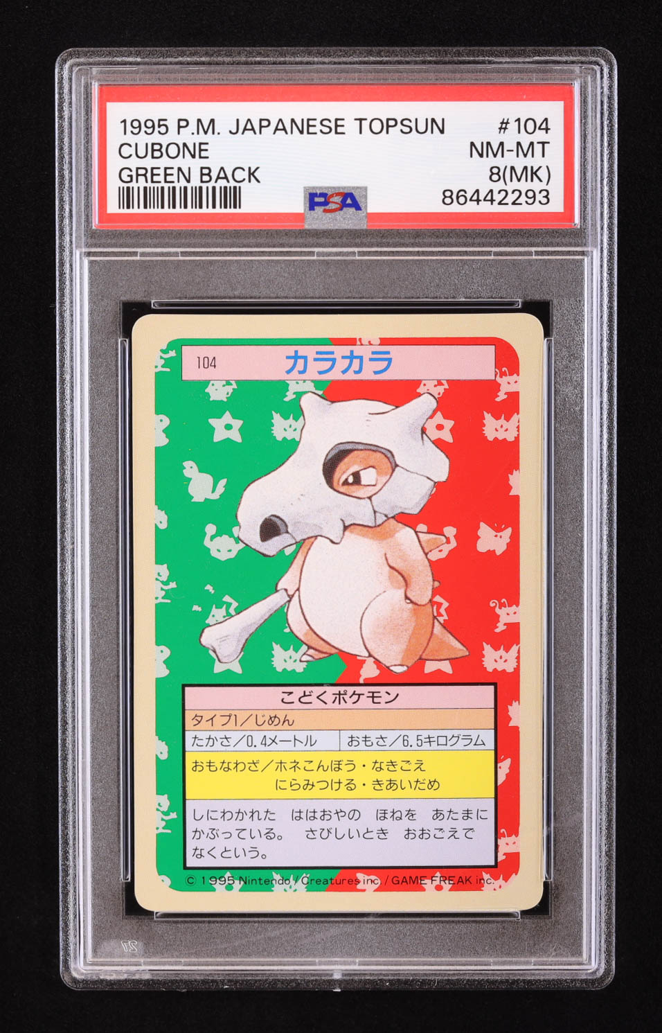 Cubone 1995 Pokemon Topsun Japanese #104 (PSA 8) (MK)