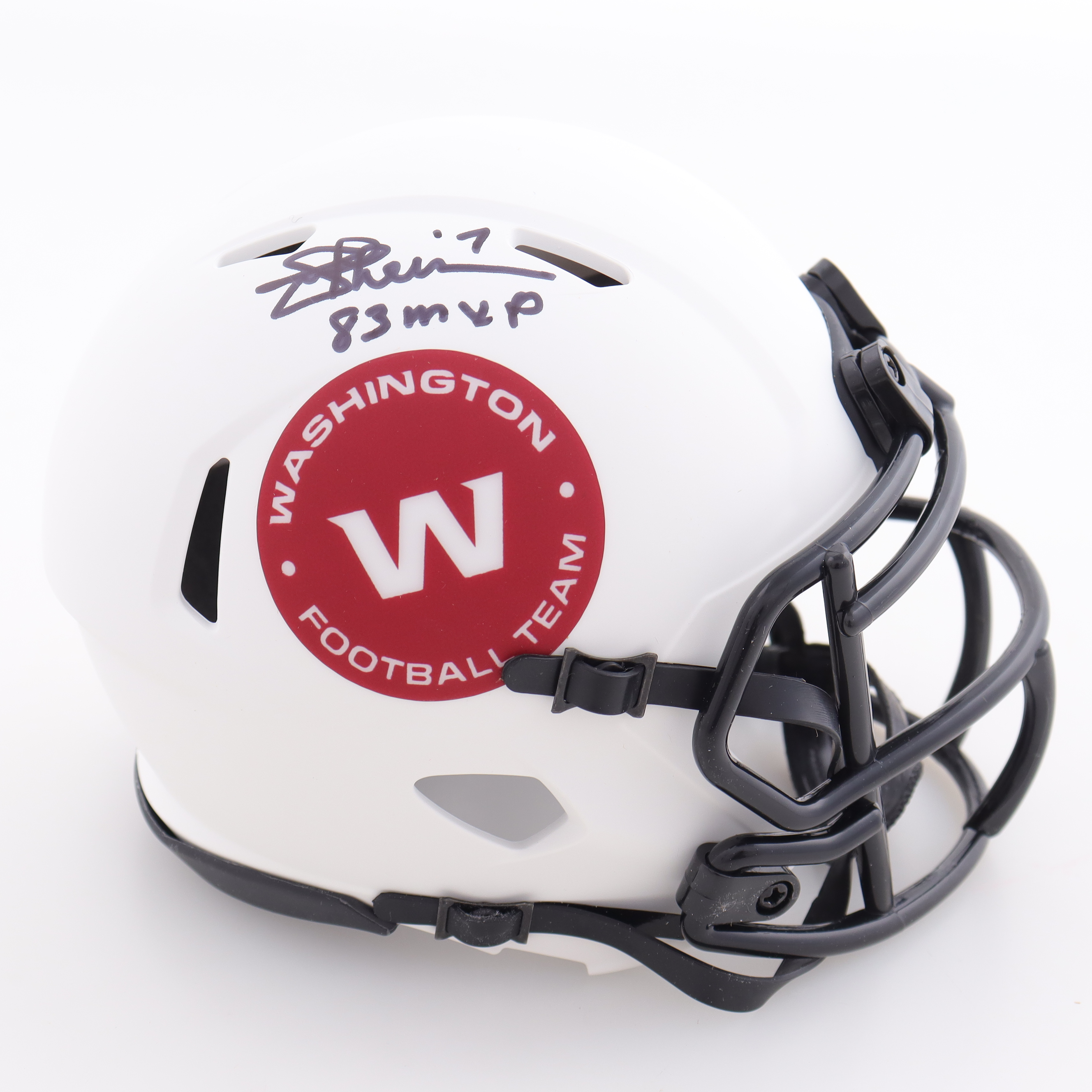 Riddell Washington Football Team lunar eclipse alternate speed mini helmet. Hand-signed and inscribed by Joe Theismann (HOF).