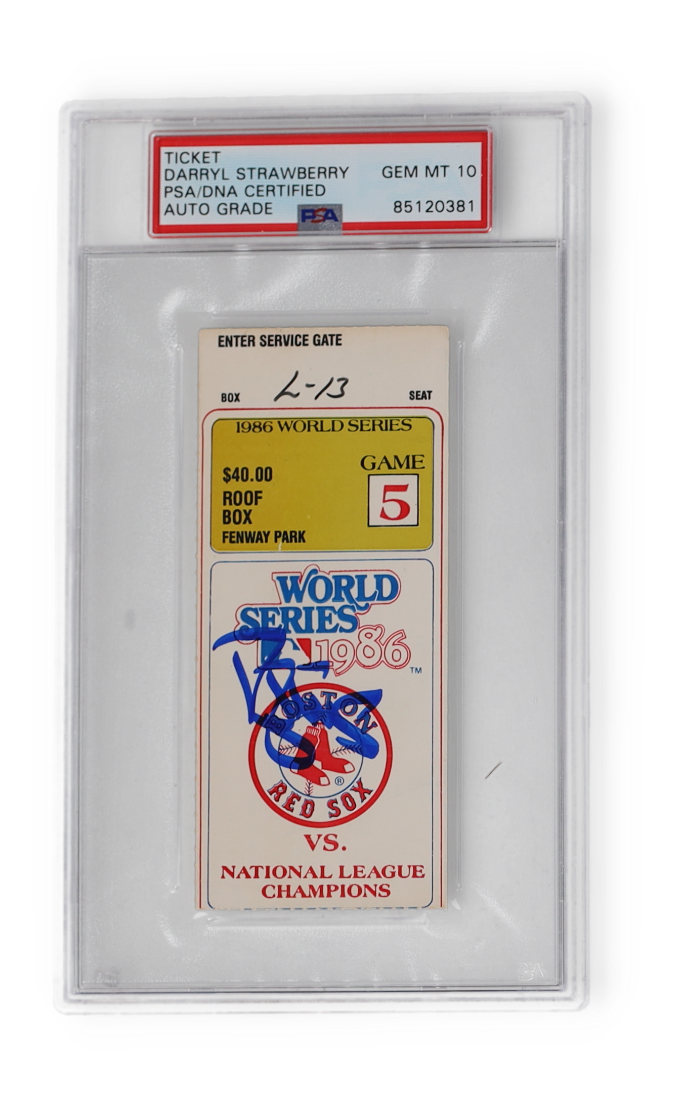 Darryl Strawberry Signed 1986 Mets World Series Game Five Ticket (PSA | Auto Grade 10)