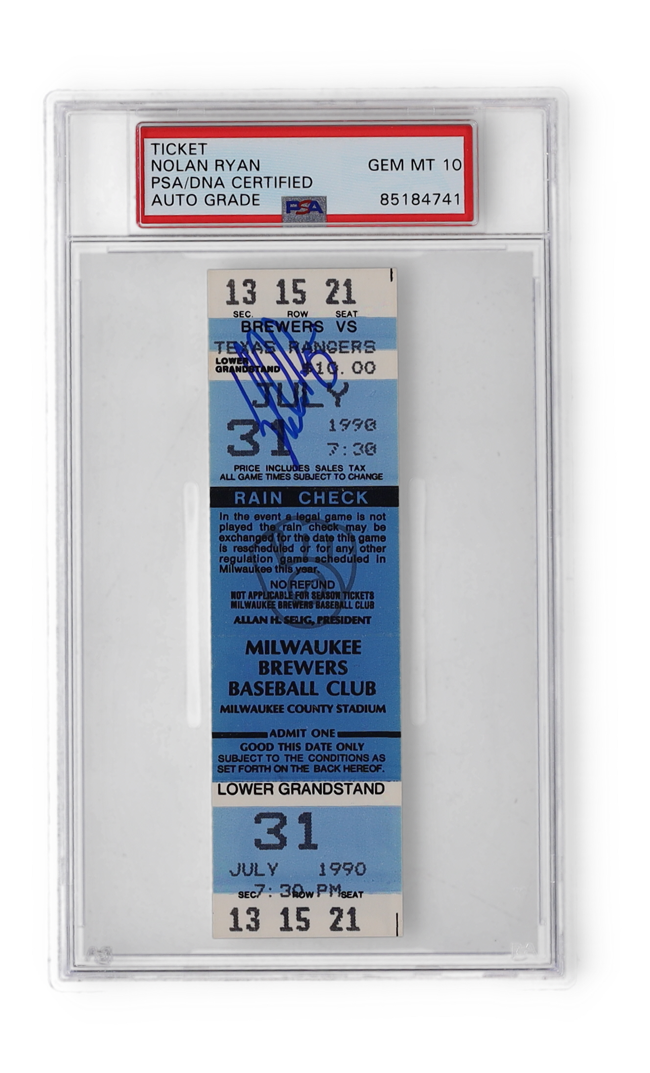 Nolan Ryan Signed 1990 Milwaukee Brewers Ticket (PSA | Auto Grade 10)