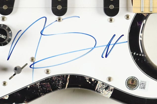 Electric guitar measures 39" has been hand-signed on the pick-guard by Nikki Sixx.
