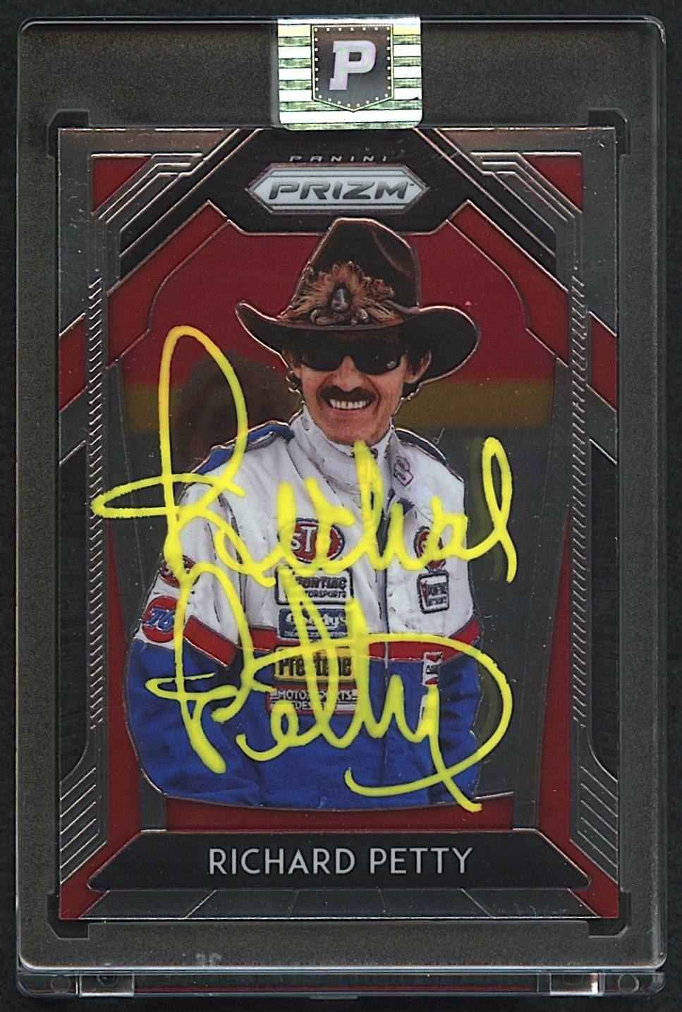 Trading card has been hand-signed by NASCAR legend Richard Petty.