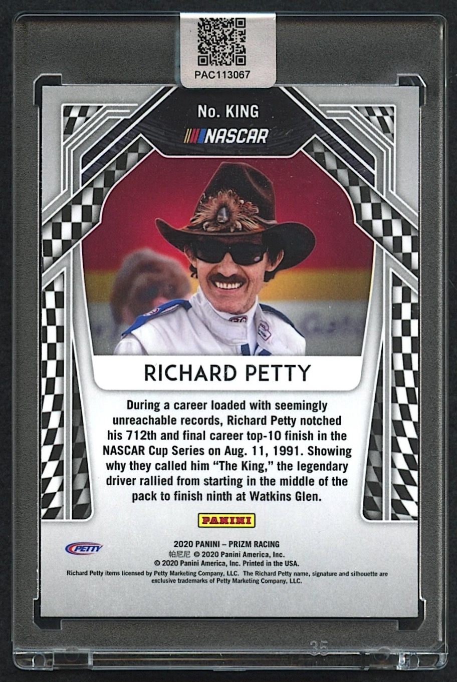 Richard Petty Signed 2020 Panini Prizm #King SP (PA Encapsulated)