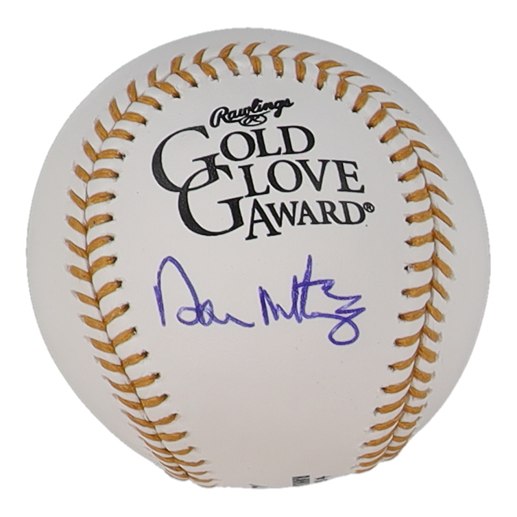 Rawlings Official Gold Glove Award Logo Baseball. Hand-signed by Don Mattingly (New York Yankees).