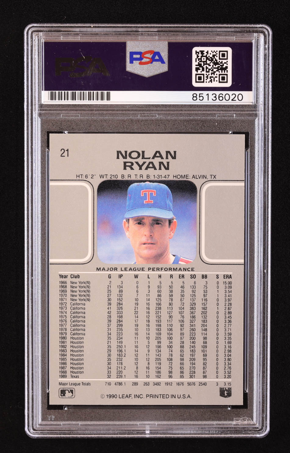 Nolan Ryan Signed 1990 Leaf #21 (PSA | Autograph Grade 10)