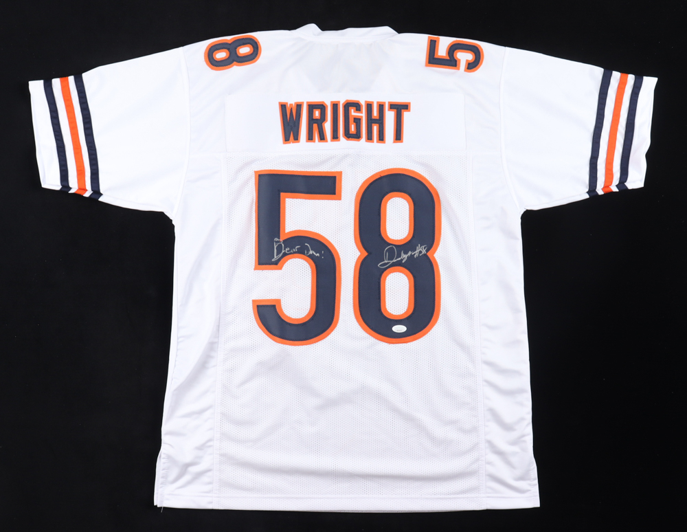 Custom jersey with everything sewn on, size XL. Hand-signed and inscribed by Darnell Wright.