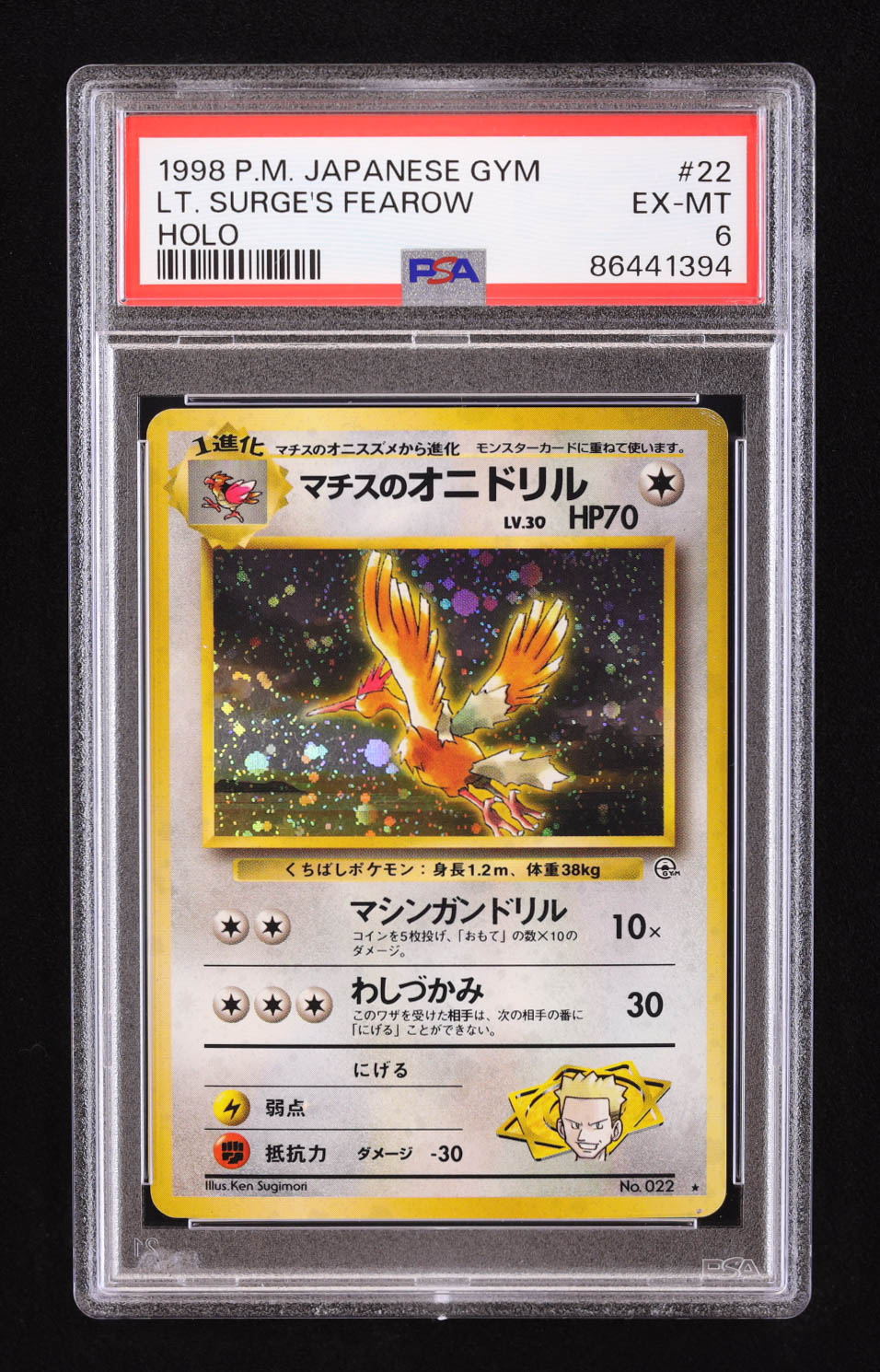 Lt. Surge's Fearow 1998 Pokemon Leader's Stadium Japanese #22 Holo (PSA 6)