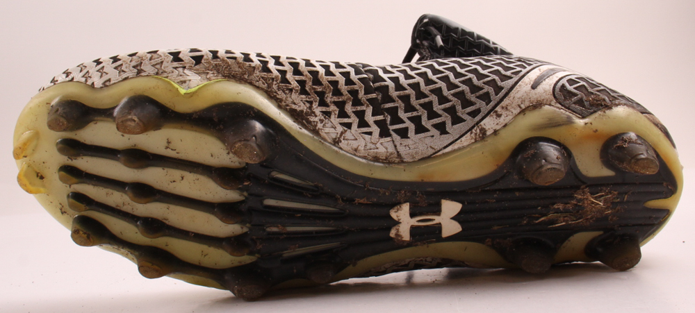 Under Armour baseball cleat, size 13 comes directly from Tim Tebow's collection and has been hand-signed by Tim Tebow (New York Mets). Please note, there is scuffing and staining on the cleat. It is unknown if it was used in practice or a game.