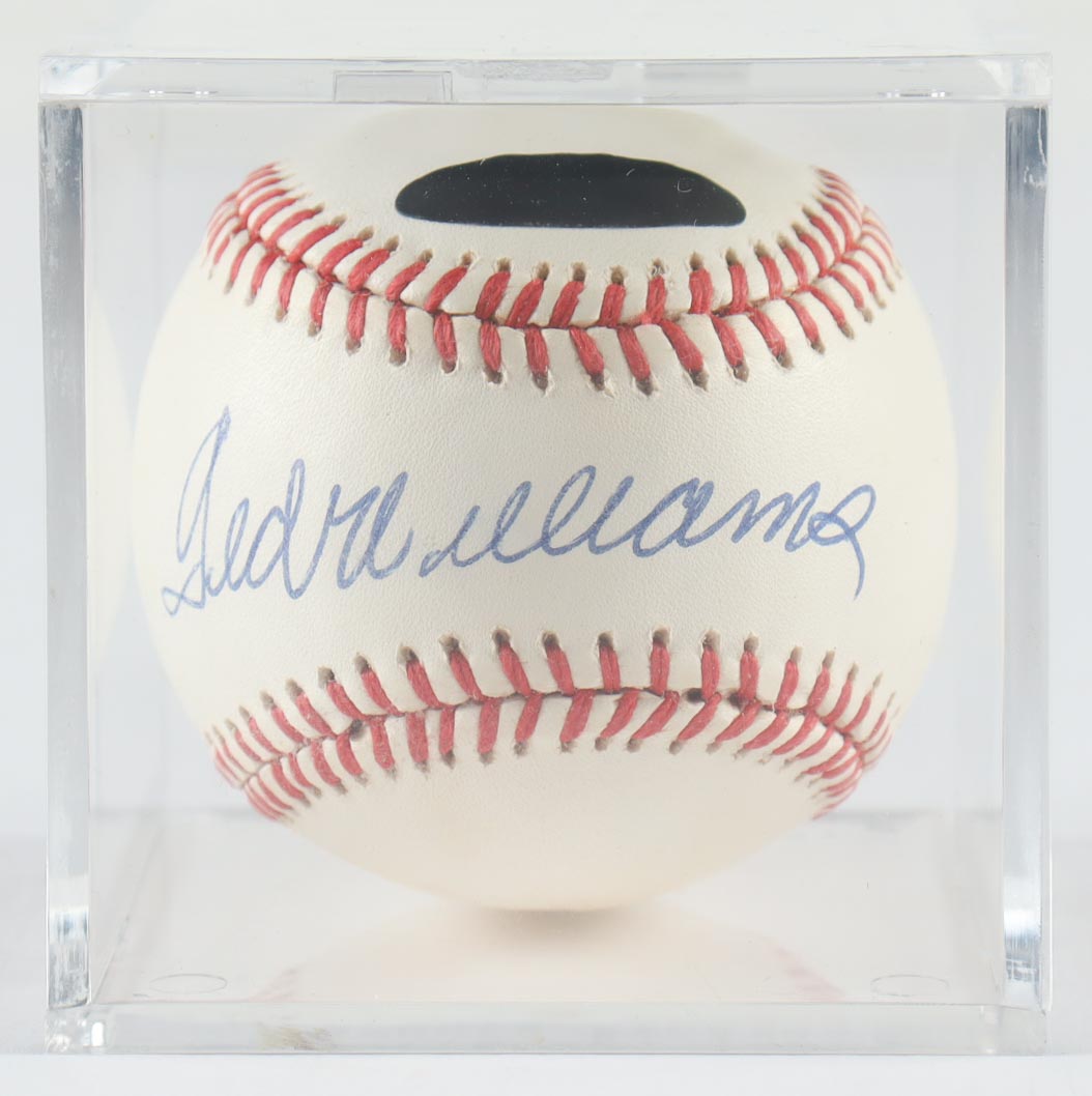 Rawlings Official American League Baseball has been hand-signed by Ted Williams (D. 2002, Boston Red Sox, HOF). Please note, the baseball is naturally toned.