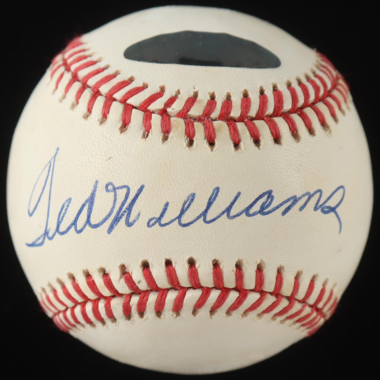 Rawlings Official American League Baseball has been hand-signed by Ted Williams (D. 2002, Boston Red Sox, HOF). Please note, the baseball is naturally toned.