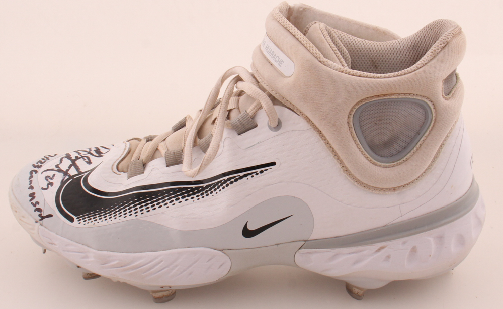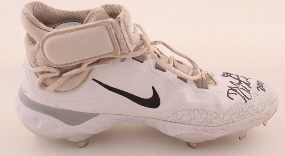 Nike baseball cleat, size 11.5, has been hand-signed and inscribed by DJ Stewart (Baltimore Orioles). The cleat has been game-used.