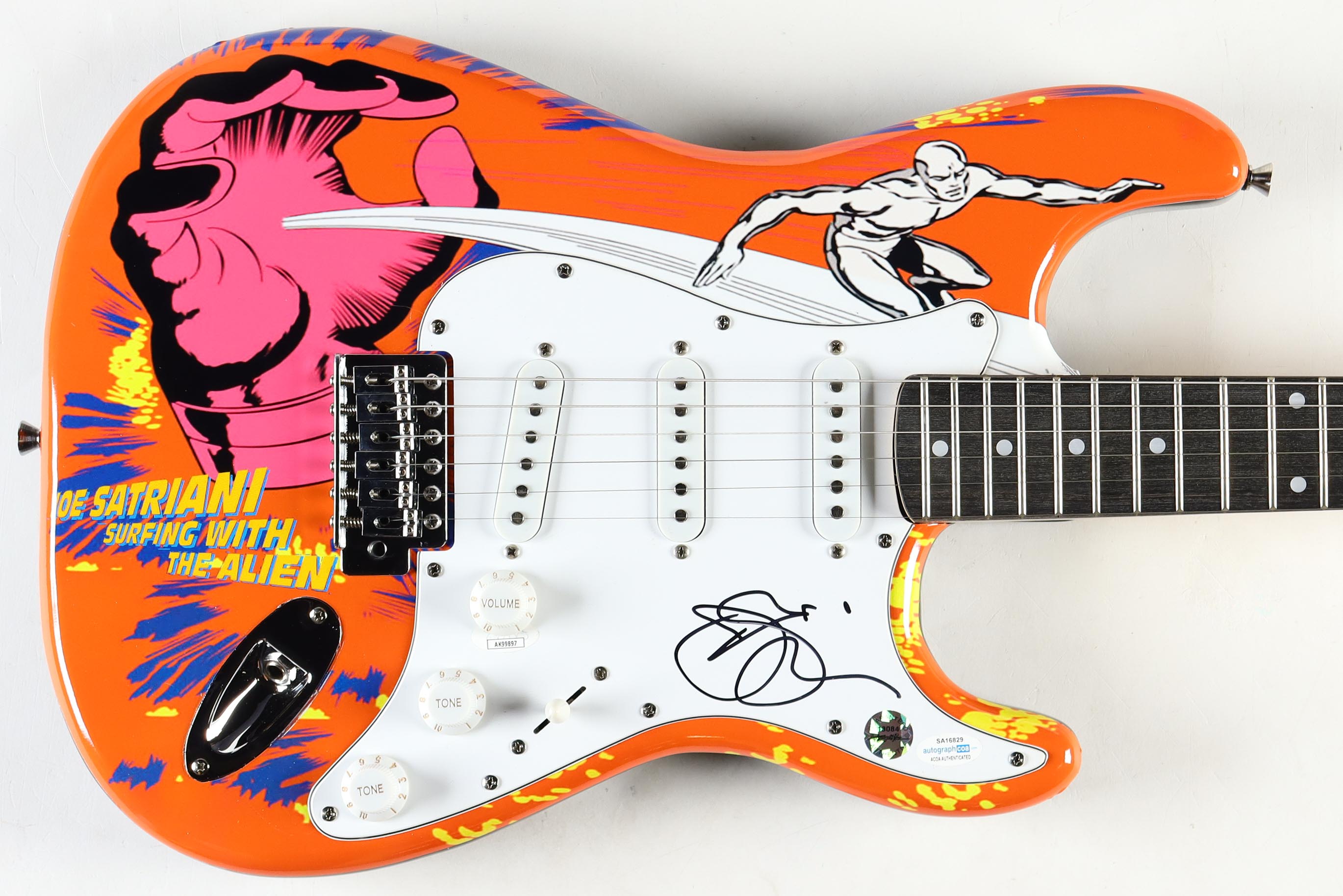 Signature Edition Guitar measures approximately 39" long. Hand-signed on the pickguard by Joe Satriani.