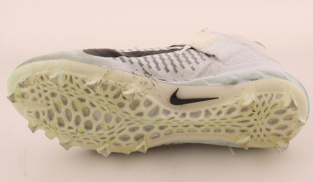 Nike football cleat, size 12.5 comes directly from Tim Tebow's collection and has been hand-signed by Tim Tebow (Denver Broncos). Please note, there is scuffing and staining on the cleat. It is unknown if it was used in practice or a game.